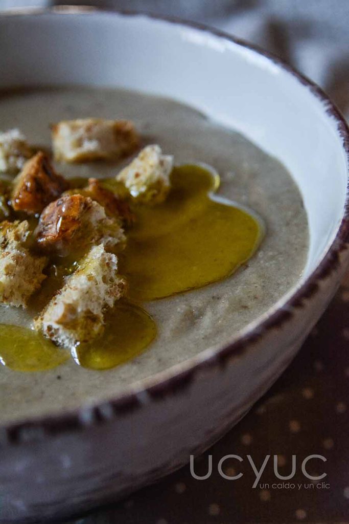 Sirve caliente: decora con tostones de pan, unas láminas de setas salteadas y un buen chorrito de aceite de oliva. Si te apetece puedes añadir aceite aromatizado con trufa o unas lascas de trufa fresca.